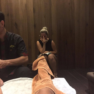Ad ogni modo si passa al primo vero step. Il lavaggio dei piedi con un infuso di tè. Ci sono quattro tipi di bustine tra cui scegliere: quella indicata per gli anziani, quella per le donne, per i lavoratori o semplicemente per il relax tutte con ottimi benefici per la vostra salute. Mentre i vostri piedi sono in ammollo, tra bolle di idromassaggio e bustine di infusi, i massaggiatori si occuperanno delle vostre spalle, collo e testa!