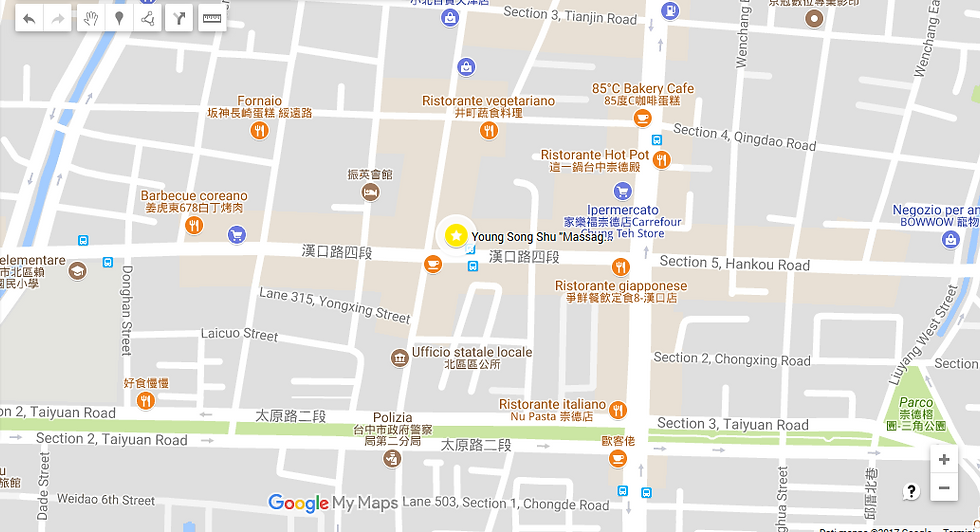 Davvero un buon posto e molto economico considerato l'ambiente e la qualita' del massaggio; il foot massage parte da TWD 630 per 70 minuti, mentre il full body Chinese massage intorno ai TWD 960 ( per 90 minuti ). Il massaggio con olio intorno ai 1.200TWD. Consigliatissimo per i residenti di Taichung e dintorni per passare un pomeriggio nel pieno relax. Sito web Map